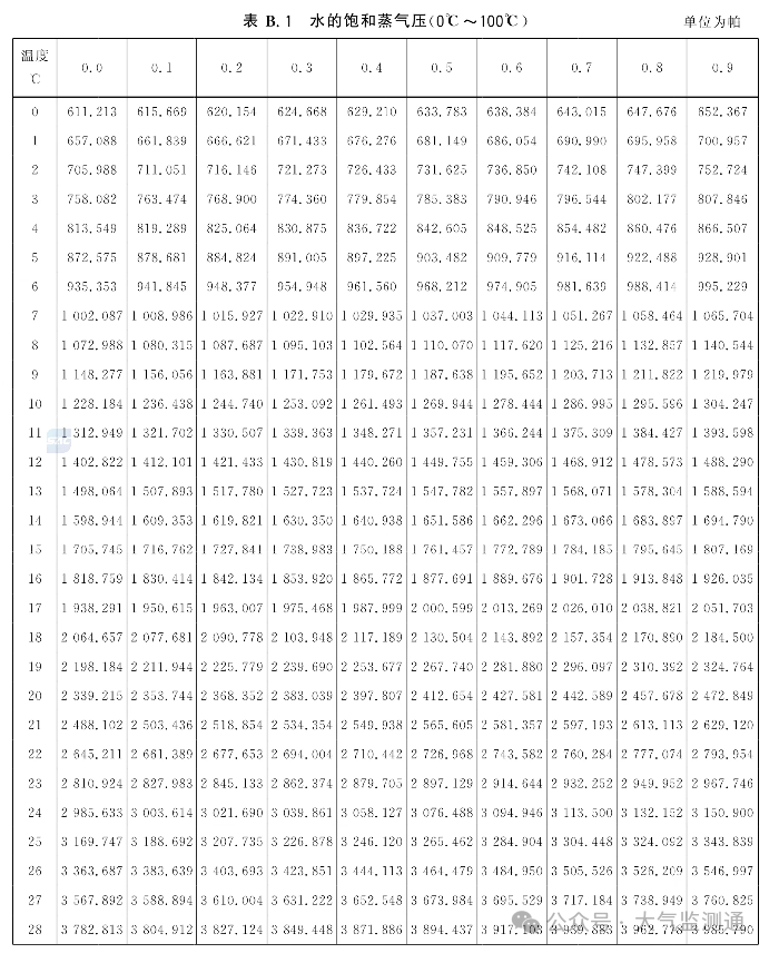 ”不同溫度條件下水的飽和蒸氣壓“可通過查表或直接計算得出,來源如下: