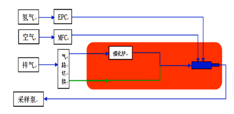 總結:催化法無需定量環,因此根據方法標準要求,只需氫氣(燃燒氣)和高純空氣(助燃氣);而色譜法需定量環進行色譜分離,除氫氣、除烴空氣外,還需要氮氣(載氣)。