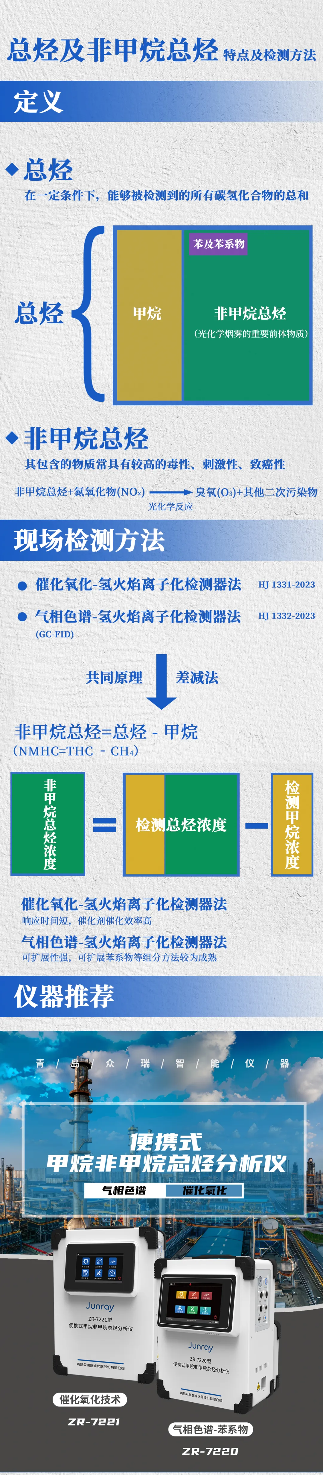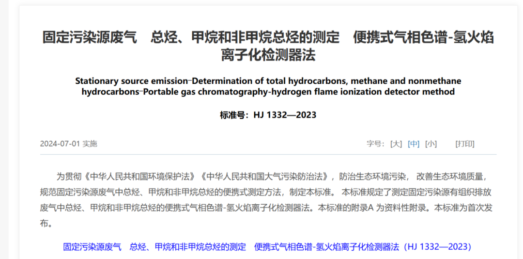 自2024年7月1日起,HJ1331-2023和HJ1332-2023兩個方法標準開始正式實施。這意味著有組織排放非甲烷總烴的檢測不必再通過現場手工氣袋采樣-實驗室氣相色譜分析了。